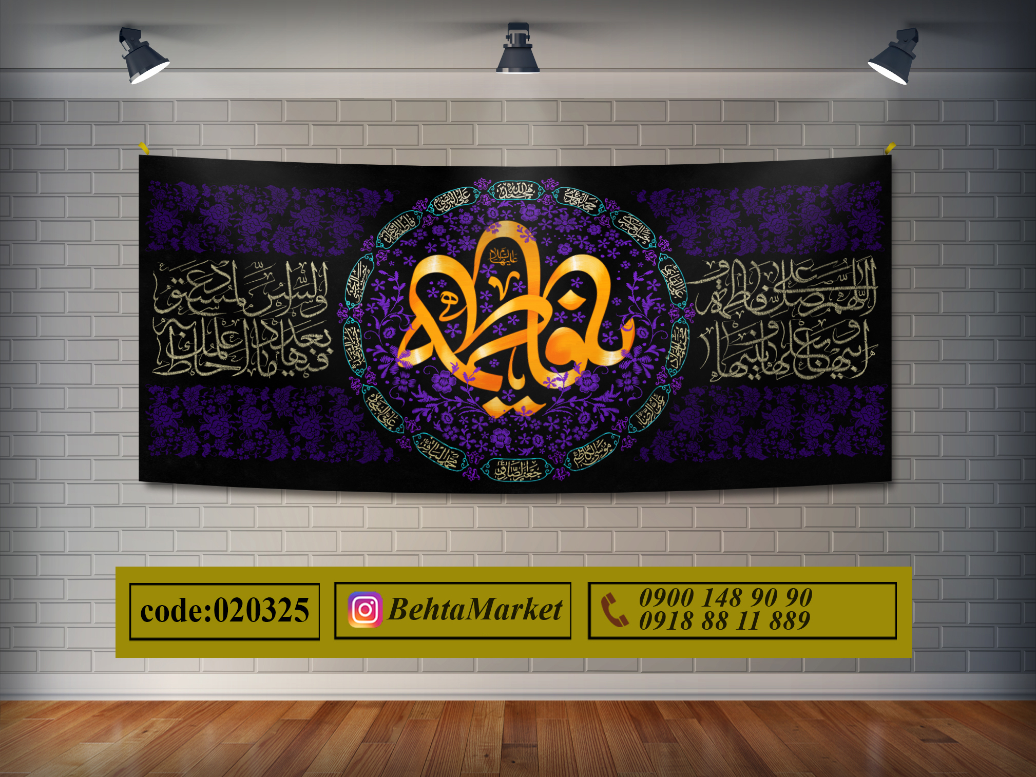 پشت منبری ایام فاطمیه کد ۰۲۰۳۲۵ دارای خوشنویسی خاص در وسط پرچم میباشد از ویژگی های بارز این بیرق استفاده از اسامی ۱۴ معصوم سلام الله علیها به صورت دایره وار حول اسم حضرت زهرا (س) میباشد ،در دو طرف این پرچم صلوات حضرت زهرا (س) به صورت سوزن دوزی شده طراحی شده است ، ما در این پرچم استفاده از نورپردازی سبز و یا قرمز را توصیه می کنیم.این پرچم با طراحی بینظیر و کیفیت بالای چاپ، برای مراسمها و مناسبتهای مذهبی انتخابی ایدهآل است. با خرید این محصول، فضای معنوی و یادبود ارزشمند را به محیط اطرافتان بیاورید. در صورتیکه طرح و اندازه خاصی مورد نظر دارید لطفا در همین صفحه از طریق لینک سفارش طرح و اندازه دلخواه اقدام نمایید.